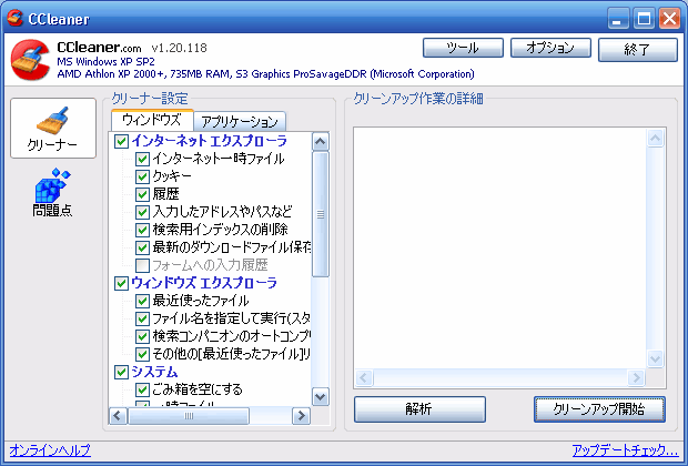 コンピュータ内の不要なファイルやレジストリなどを削除してくれるソフト。