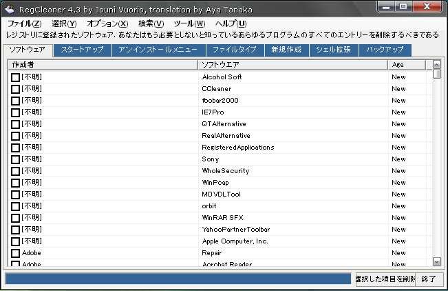 RegCleanerのサンプル画像です。